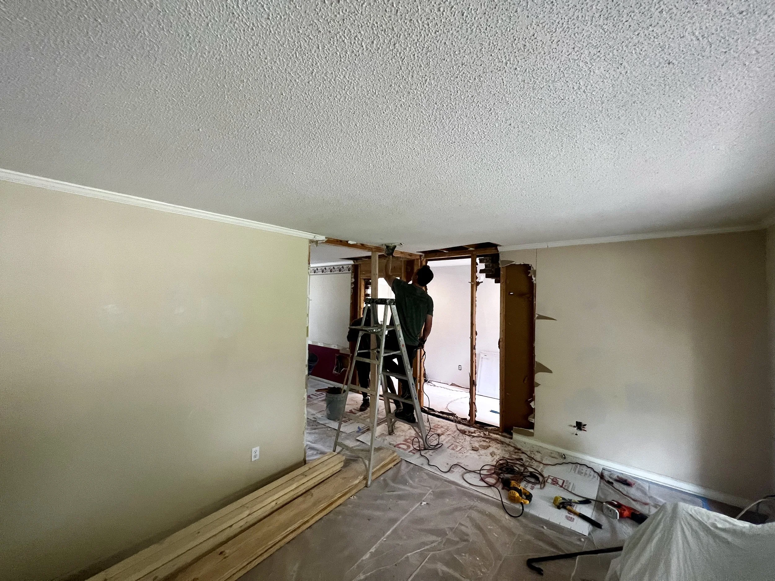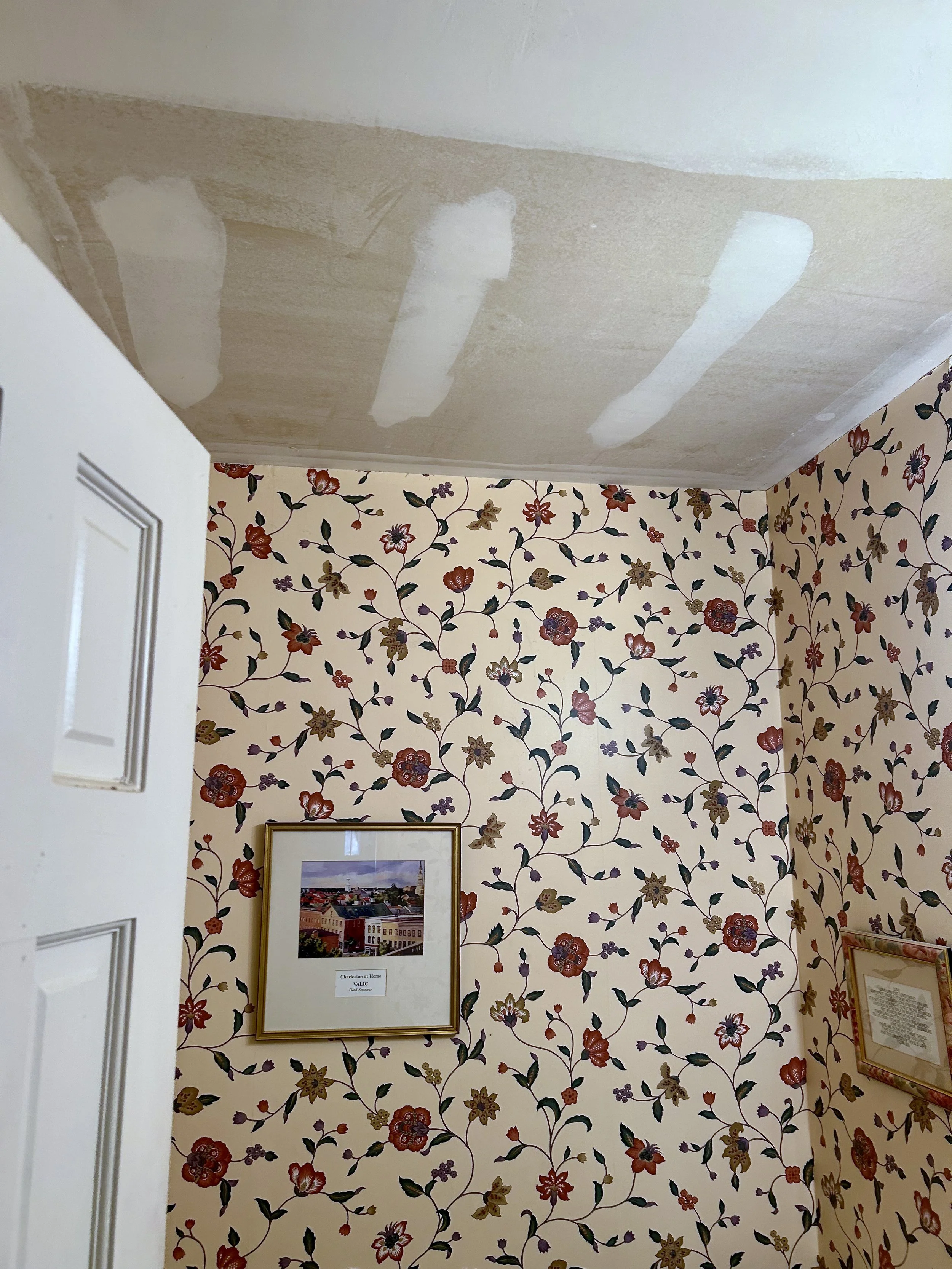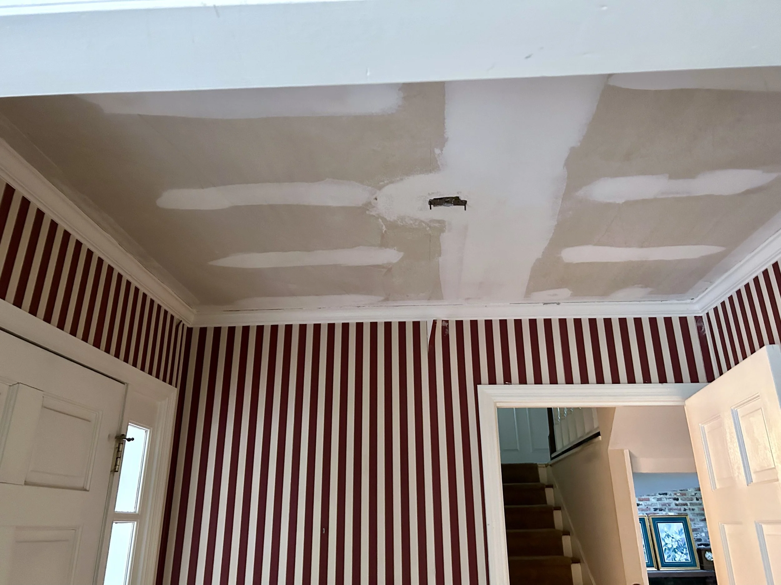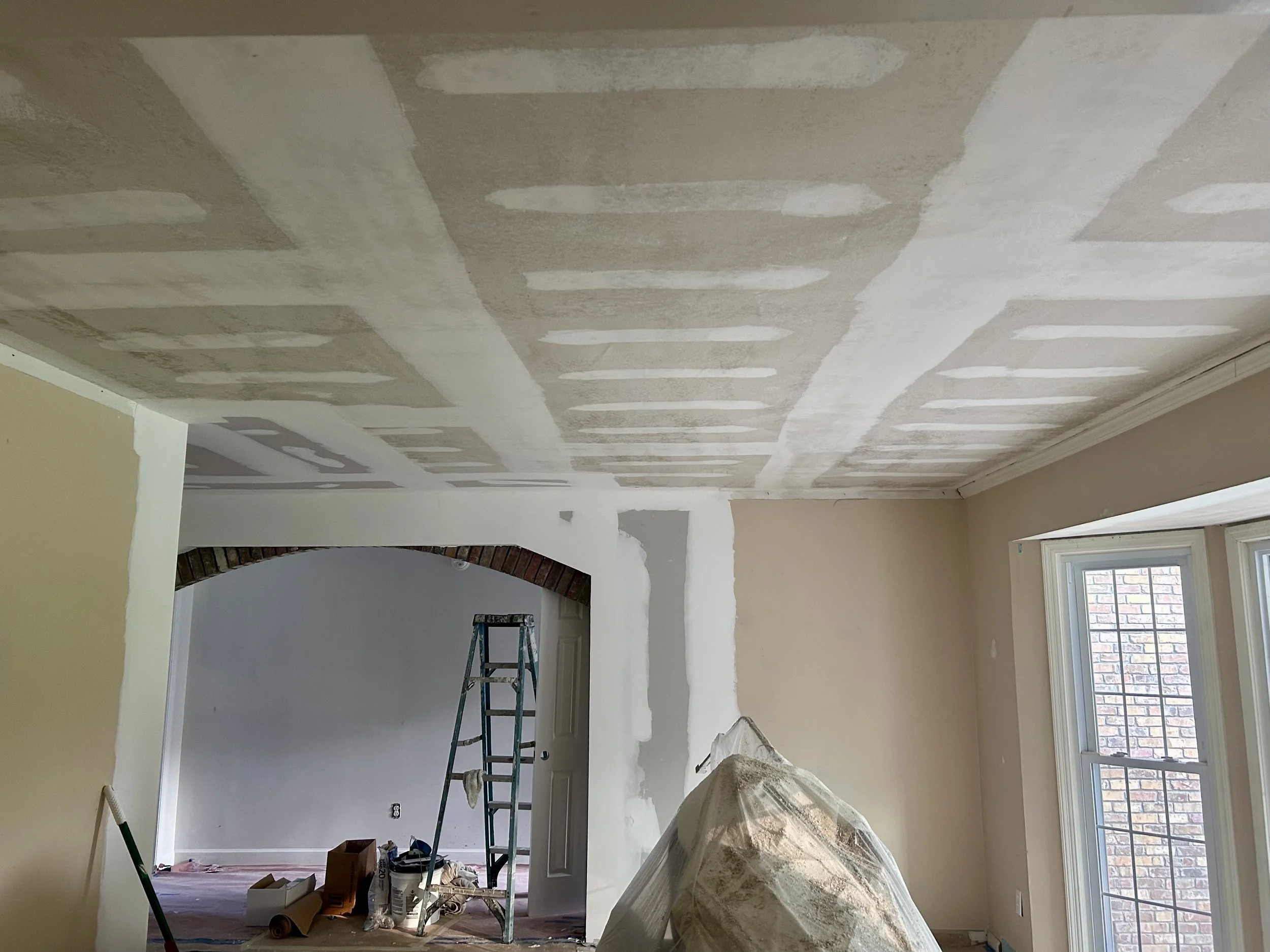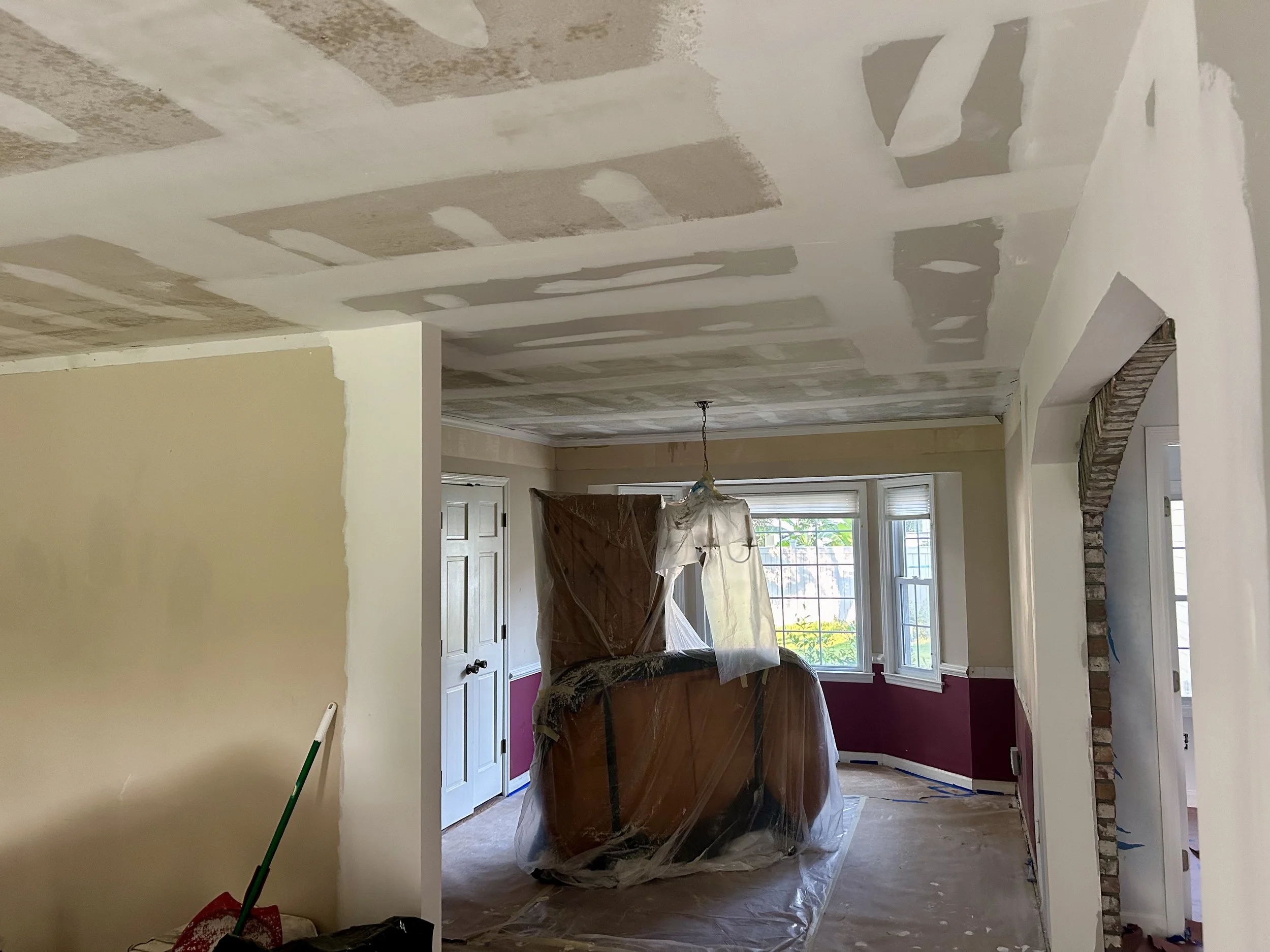 This client’s house had not been updated since the late 1990s. They were seeking to remove outdated popcorn ceilings in their downstairs half-bathroom, living room, and dining room as well as painting the living room/dining room and trim.